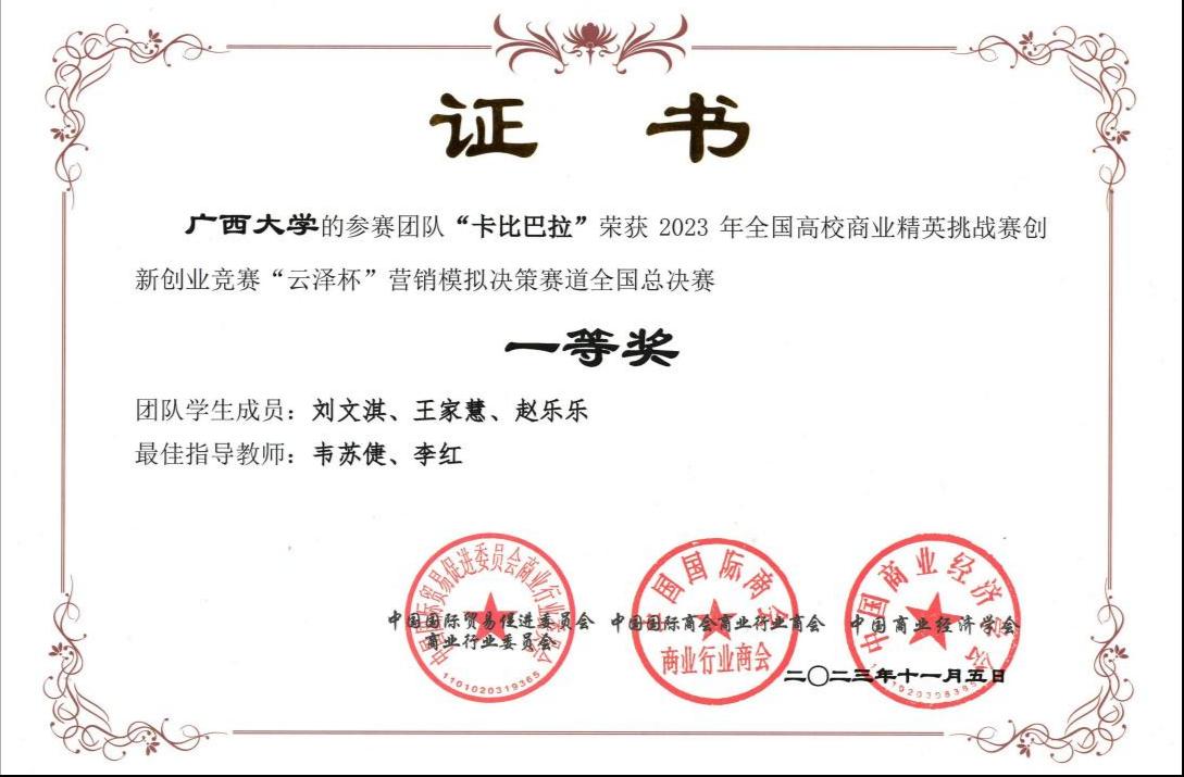 选送的3支代表队与来自全国26个省、自治区、直辖市的近300所高等院校1000多支参赛队伍同台竞技,最终斩获国赛一等奖一项,二等奖两项。比赛由韦苏倢、李红、蒙江勇三位老师共同指导,其中,卡比巴拉代表队表现尤为突出,成功晋级了全国总决赛精英赛。