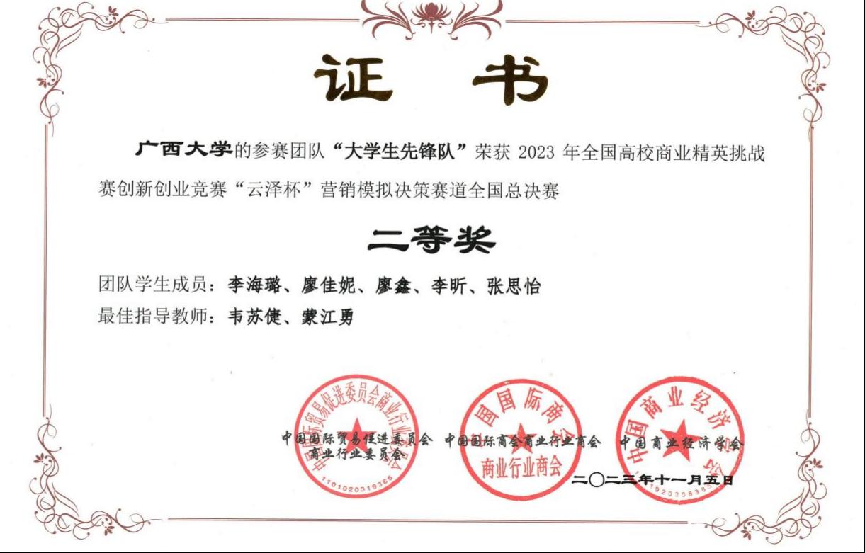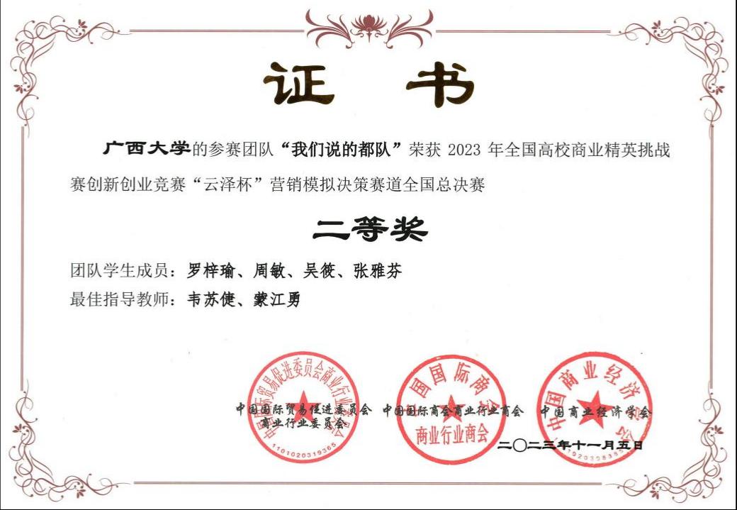 近日,2023年全国高校商业精英挑战赛创新创业竞赛“云泽杯”营销模拟决策赛道全国总决赛落下帷幕。该赛项从校赛到全国总决赛共计2000多支队伍参赛,在全国预选赛中,91黑料