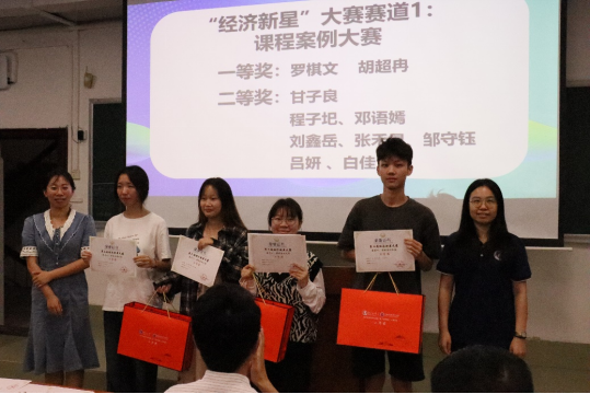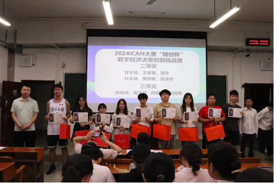 随后,举行了颁奖仪式。在学院的大力支持下,今年经济学专业举办了第二届“经济新星”大赛,并组织同学参加了全国高校经济决策虚拟仿真实验大赛、2024iCAN大赛“精创杯”数字经济决策创新挑战赛。随着同学们创新创业意识的提高,各项竞赛的参赛人数再创新高,作品质量不断提高,比赛成绩显著提升。参会老师为获奖的同学进行了颁奖。