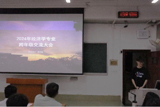 会上,院长助理覃诚老师致辞。他表示,经济学专业跨年级交流大会不仅为学院构筑了一个发掘和培养未来经济学人才的舞台,同时展现了经济学专业“传、帮、带”的良好传统,希望同学们以此为契机,将经济学知识融入日常的学习和生活中,勇于挑战自我,用所学回馈社会。