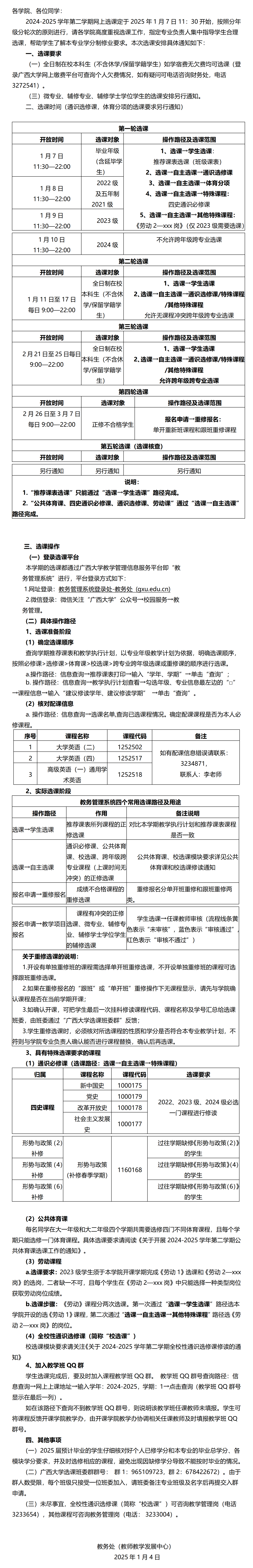 关于开展2024-2025学年第二学期选课工作的通知