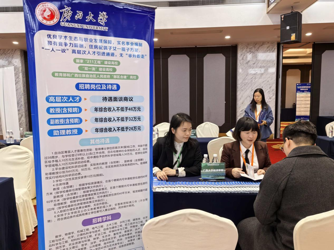 论坛专业性强,定位精准,搭建了高效的高层次人才对接平台,汇聚了全国多所高校金融学领域的优秀博士生,专门设置了招聘单位宣讲环节和咨询专场。谭春枝副院长围绕学院学科特色,重点介绍了中国—东盟金融合作、边疆经济学、数字经济等学科建设情况和发展优势,详细解读了学院师资队伍建设规划、科研平台资源以及专任教师的招聘需求、发展空间与配套支持政策以及福利待遇等。部分与会的名校博士生通过参加宣讲活动和现场咨询交流,表示出对学院的浓厚兴趣。