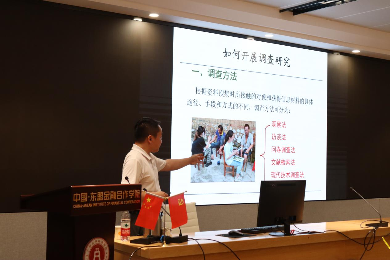 接下来,陈新建结合个人的学术研究经历,向同学们阐述了开展调查研究的原因和必要性,并详细介绍了观察法、访谈法、问卷调查法等调查方法以及普通调查、抽样调查和典型调查等调查方式,分析了科学研究的基本过程和论文写作方法基本结构,切实解决了同学们在学术研究过程中产生的困惑,为同学们更高质量地开展学术研究提供良好借鉴。