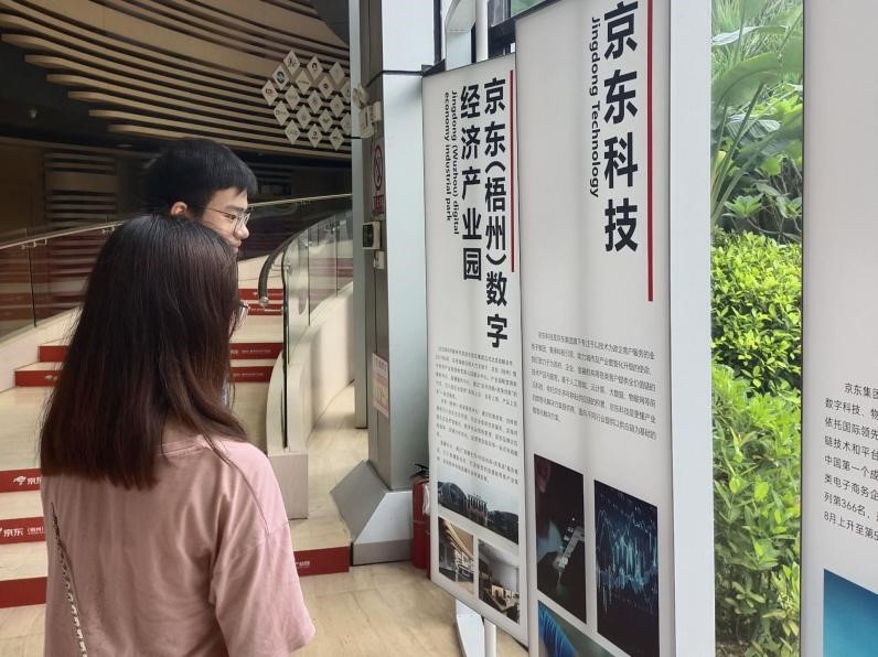 7月19日,实践团到达京东梧州数字经济产业园,在产业园负责人郭先生的带领下,实践团成员参观了梧州市与京东智联云达成的“互联网+”数字经济战略合作成果,双方就新时代百年两广商埠“互联网+特色产业”的发展现状进行深度交流。随后,负责人就今年经济园直播中心“618”购物节的有关情况进行详细介绍,团队成员对数字经济助力乡村振兴的意义有了全新的认识。