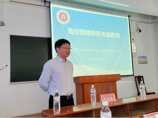 /中国—东盟金融合作学院于6月21日上午组织全院教师开展师德师风专题教育。