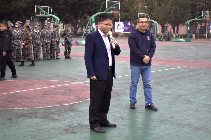 院党委副书记郭宇路对军训教官和指导员们的辛苦付出表示感谢,并表扬了同学们在这几天的军训中取得的成绩,希望大家在接下来的军训中继续端正态度,听从指挥,认真训练,为军训画上一个圆满的句号。