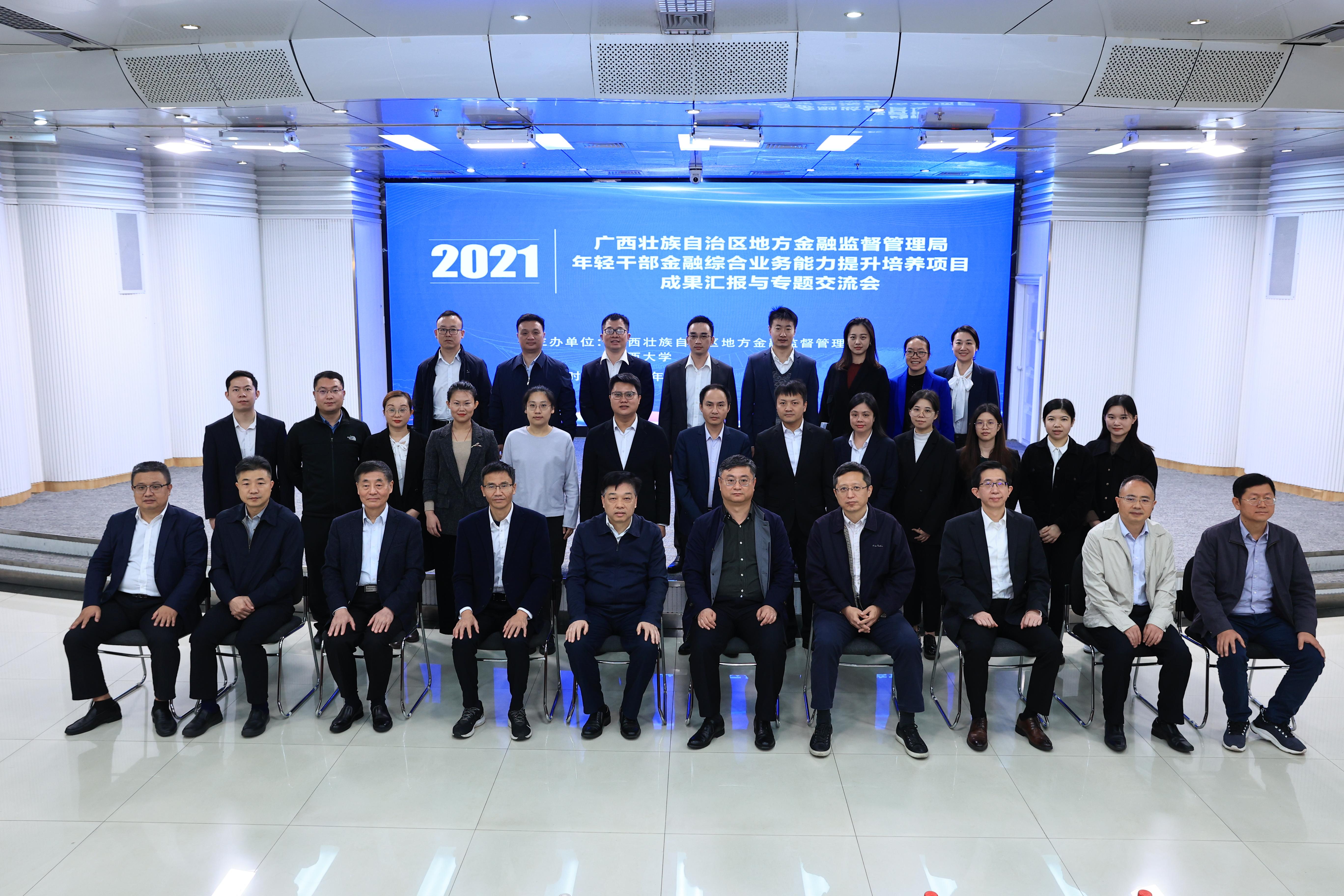 12月10日上午,自治区地方金融监管局年轻干部金融综合业务能力提升培养项目成果汇报与专题交流会顺利召开,会议全面展示汇报为期半年的学习成果,并举行结业仪式。自治区地方金融监管局党组书记、局长范世祥总结讲话,我校党委常委、副校长田利辉参会并致辞。中国人民银行、银保监会和证监会的在桂派出机构等金融界领导也出席了这一活动。