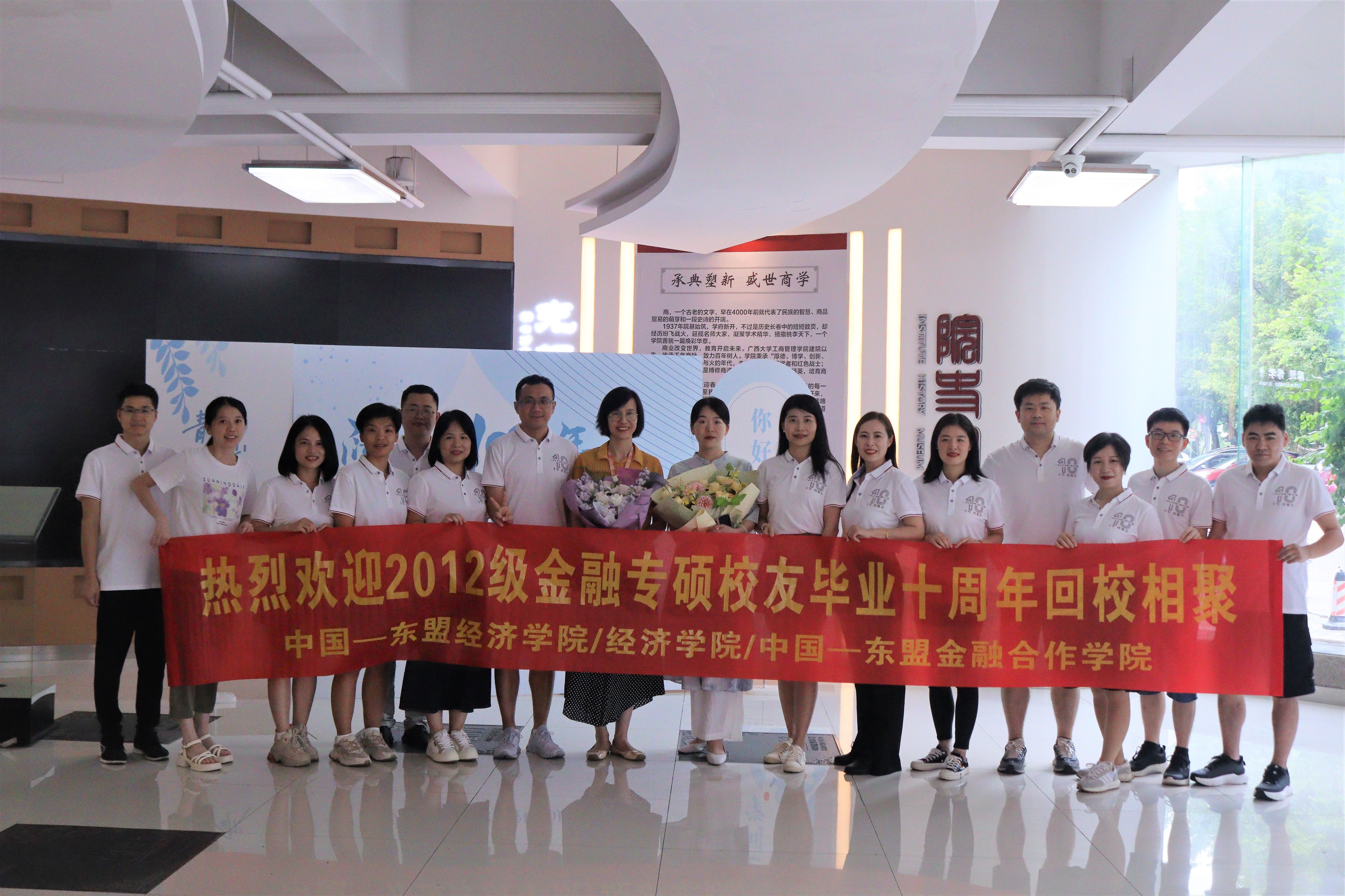 /中国—东盟金融合作学院2012级金融专硕校友齐聚南宁,重返母校,在MBA大楼315会议室庆祝毕业十周年,共叙师生情谊,重温青葱岁月。