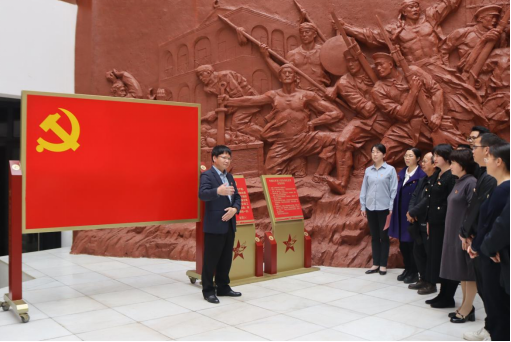 最后,学院师生党员前往龙州起义纪念馆参观。在纪念馆大厅主题雕塑前,学院党委副书记陈卉娟带领师生党员重温了入党誓词。学生党员代表吕越和教职工党员代表郭南芸先后发表了感言。