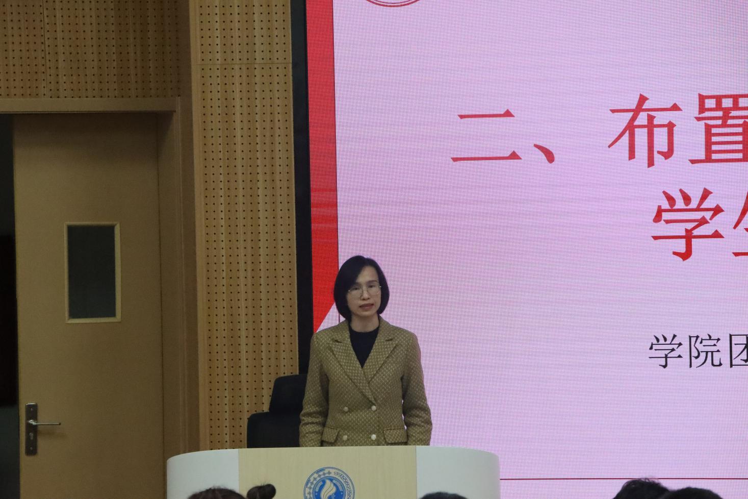 在2023年取得的喜人工作成绩,包括学科排名大幅上升、毕业生就业升学率稳中有进、学科竞赛斩获多项全国荣誉等。她肯定了学生干部在学院高质量发展过程中发挥的积极作用,同时也对大家提出以下期望:一是利用寒假坚持专业学习,认真复习准备考研、参加学科竞赛、备考专业资格证书等;二是根据自身情况参与实践活动,如专业实习、劳动锻炼、分担家务,毕业生也可以返乡找工作;三是注意保持清廉自律,特别过年期间自己和家人都要杜绝铺张浪费,以及共同维护清朗网络空间;四是牢固树立纪律意识和安全意识,诚信考试,高高兴兴回家过年,平平安安开学返校。