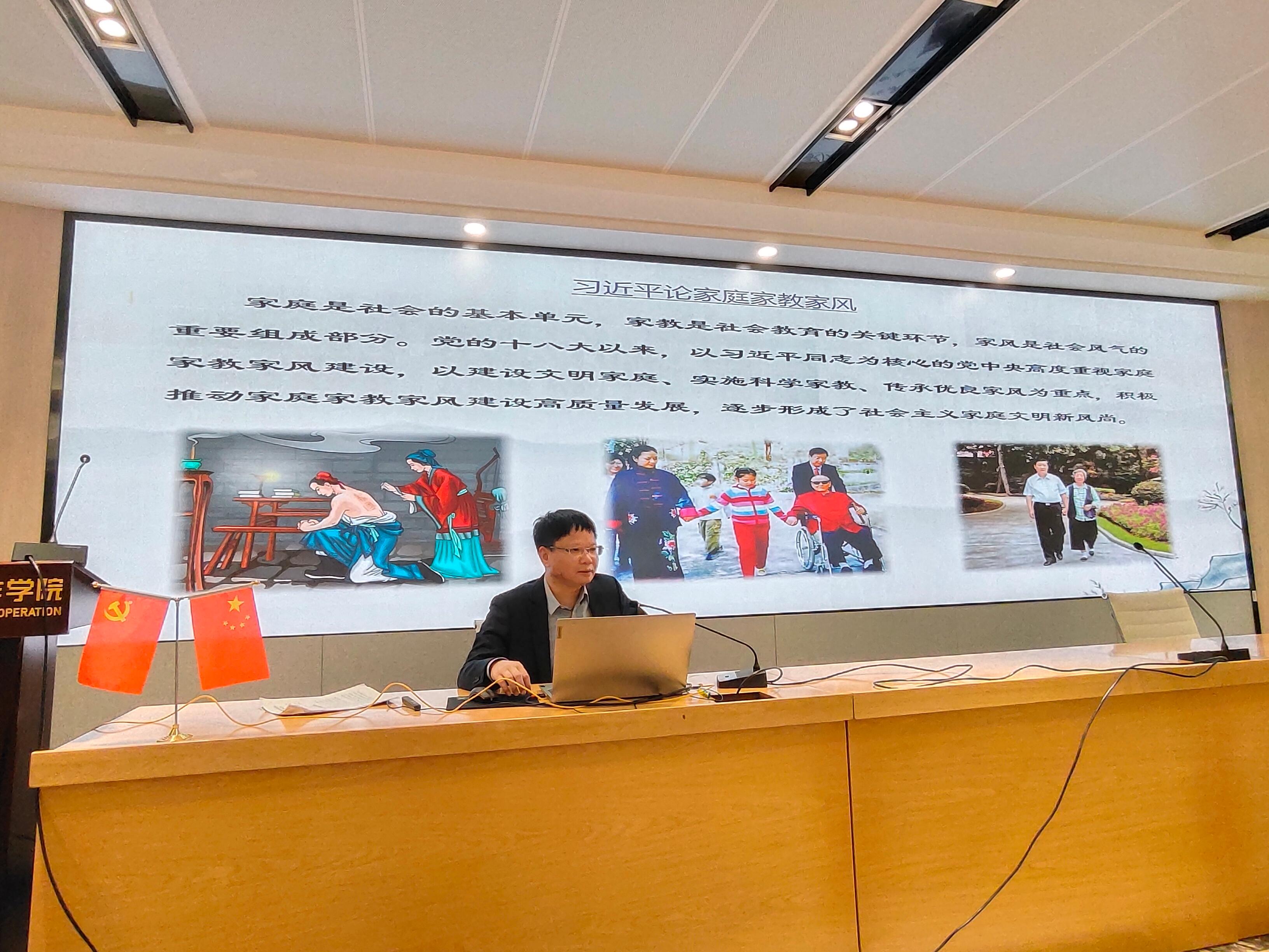 党委书记陆善勇教授面向全院教职工主讲家庭家教家风专题党课。
