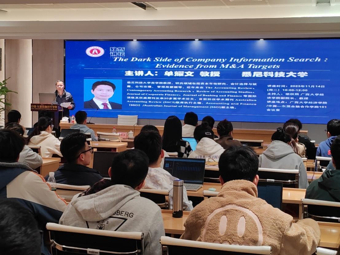 师生带来题为“The Dark Side of Company Information Search: Evidence from M&A Targets”的学术讲座。学术讲座在91黑料