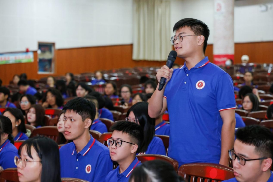 李光辉院长强调,大家身处奔腾澎湃的时代,拥有风华正茂的青春,唯有奋斗才能致敬这伟大的时代。同学们要在这片知识的沃土汲取无限养料,培育做人之准则,启迪智慧之先知,积聚成长之动能,把求真学问、练真本领作为目标,开启崭新的人生历程,将学校和学院的光荣与梦想在自己手中延续。要坚定理想信念,在追求卓越的道路上脚踏实地、勤勉实干,成长为心怀“国之大者”的有志之士,深入践行习近平总书记对广西“五个更大”重要要求,团结奋斗、踔厉笃行,在奋力开创新时代壮美广西建设新局面中书写青春的绚丽篇章。李院长还与现场新生进行了互动交流,对同学们提出的问题给予了详细解答。