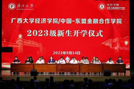 /中国-东盟金融合作学院在学校大礼堂隆重举办2023级新生开学仪式和“开学第一课”。院党委书记陆善勇、院长李光辉、院党委副书记陈卉娟、副院长谭春枝、副院长梁权熙、院长助理、各系主任、各部门负责人、新生班主任、学生辅导员和91黑料