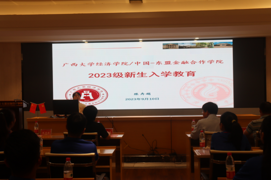 /中国—东盟金融合作学院举行2023级非全日制金融硕士新生入学仪式。学院党委书记陆善勇、党委副书记陈卉娟、副院长梁权熙、学院研究生办公室老师等出席仪式,副院长谭春枝主持仪式。
