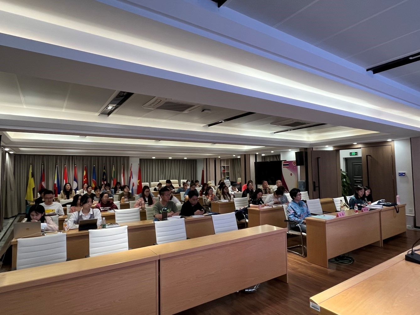 中国-东盟金融合作学院东盟语种培训系列活动之泰语培训班在学院101会议室举办开班仪式,学院本、硕、博学生50余人参加本次培训。