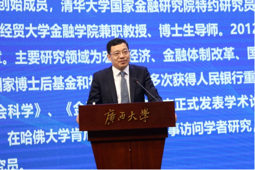联合举办,邀请了清华大学经济管理学院金融系教授、全国政协常委李稻葵,清华大学副校长杨斌(线上参会),中国人民银行金融研究所所长周诚君,国家外汇管理局外汇研究中心主任丁志杰,广西壮族自治区地方金融监督管理局副局长樊新鸿,中国银行研究院副院长、《国际金融研究》 《国际金融》常务副主编钟红等专家学者参会。