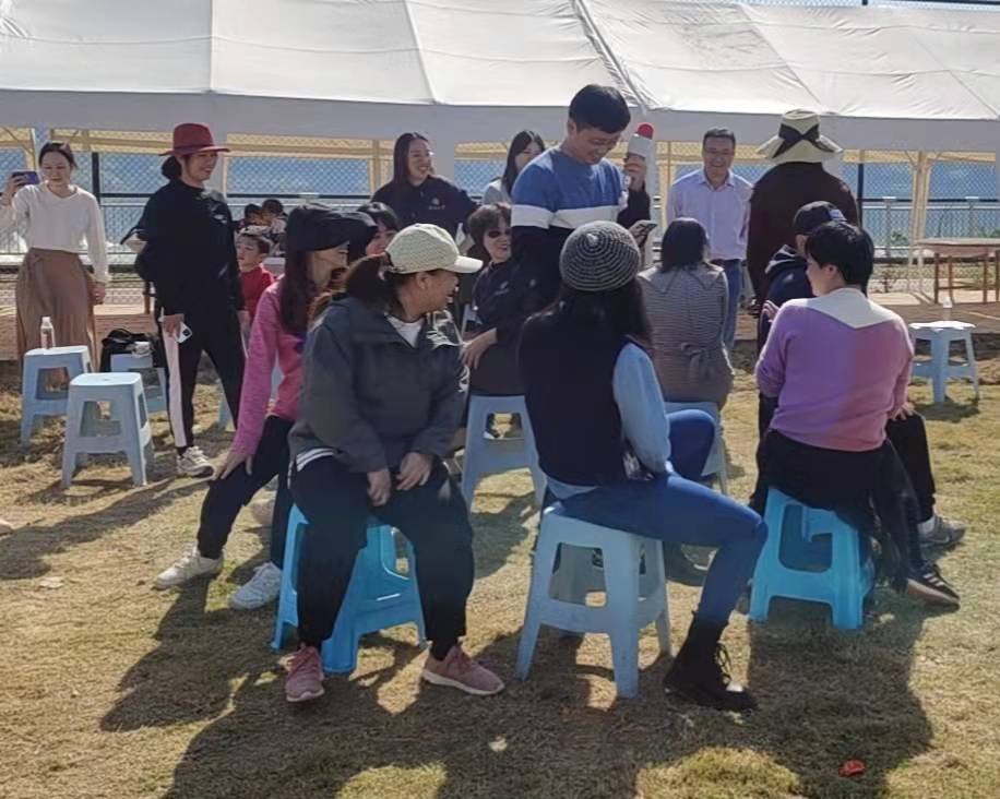 本次秋游活动,由唱红歌比赛拉开序幕,全体教职工分为两组,两组教师自行选择红歌进行比赛,最后两组分别选定《唱支山歌给党听》、《我和我的祖国》两首歌曲,你方唱罢我登场,大家在悠扬的歌声中表达了自己爱国爱党的情怀。随即开展了党史知识竞答,你划我猜、气球大作战、抢凳子大作战、单腿火车跑等趣味团体游戏。