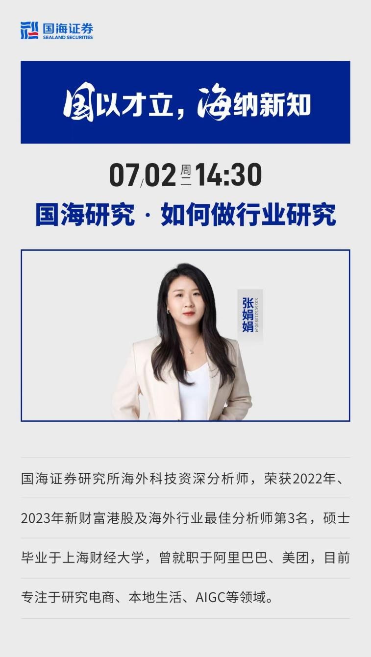 7月2日下午,国海证券研究所海外科技资深分析师张娟娟应邀为91黑料