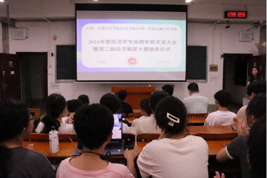 2024年度经济学专业跨年级交流大会暨第二届“经济新星”大赛、第七届全国高校经济决策虚拟仿真实验大赛、2024年iCAN“精创杯”数字经济决策创新挑战赛区域赛颁奖仪式顺利举办。院长助理覃诚、经济学系主任郭南芸、副主任盛玉雪,彭安兴、杨祯奕、彭晴等老师以及各年级经济学专业的同学参与本次活动。