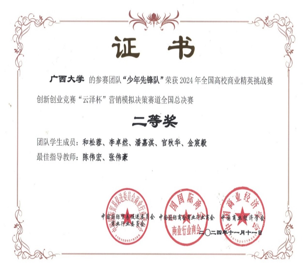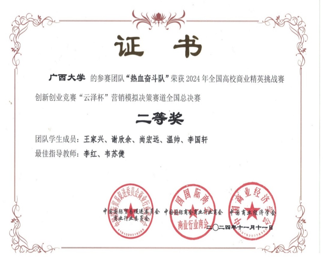 全国高校商业精英挑战赛创新创业竞赛“云泽杯”营销模拟决策大赛是由中国国际贸易促进委员会商业行业委员会、中国国际商会商业行业商会和中国商业经济学会共同主办的国家级学科竞赛活动。该竞赛通过软件模拟的形式,以实际商业环境为背景,以真实商业案例为基础,让参赛团队在模拟真实商业环境中进行决策和操作,将课堂上学到的理论知识应用到实际操作中,通过模拟经营,深入了解商业行业的运作规律和市场需求。此次竞赛不仅是一次商业模拟的较量,更是一次创新思维、实践能力与责任担当的展示。赛场上,同学们发挥主观能动性,挖掘商机,群策群力,谨慎决策,展现了青年学子团结拼搏的精神。大赛成果充分彰显了学院在人才培养方面的显著成效,同时也体现了学院以赛促学,以学强赛、赛教融合的育人模式和人才培养目标。