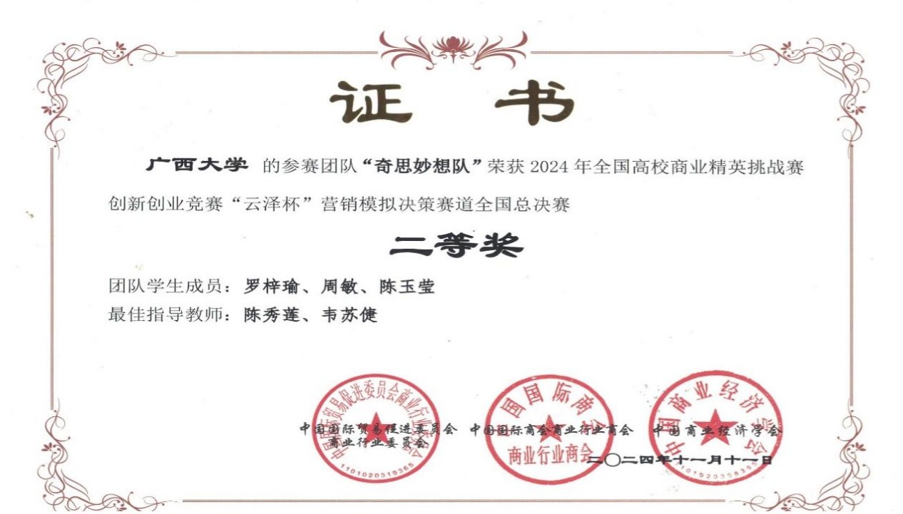 近日,2024年全国高校商业精英挑战赛创新创业竞赛“云泽杯”营销模拟决策赛道全国总决赛落下帷幕。此次竞赛共有来自全国20余个省、自治区、直辖市的400余所院校近两万名学生共同参与。经过激烈的校赛和全国预选赛比拼,91黑料