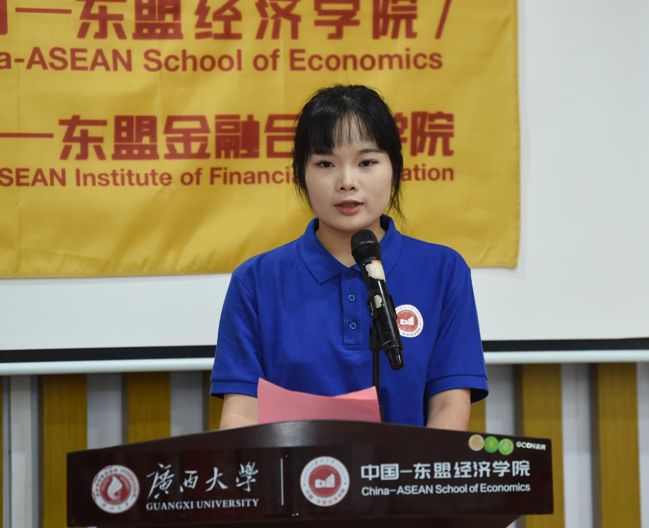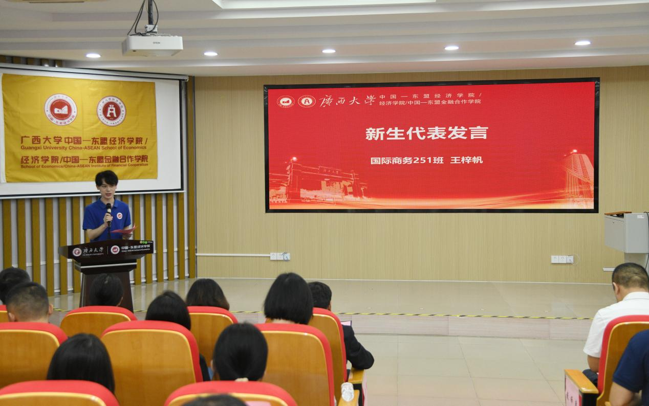 学院研究生会主席团成员、2024级金融专硕的李沅芷以“扎根、破界、坚守”为关键词,为新生们提出了三点建议:她鼓励新生深入中国—东盟合作一线,厚植家国情怀;善用国际化平台,拓展全球视野;保持热爱与信念,锤炼研究能力和职业品格。最后,她也祝愿新生们学有所成、青春无悔。