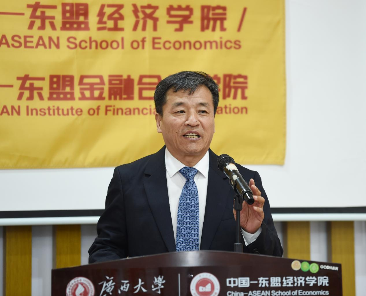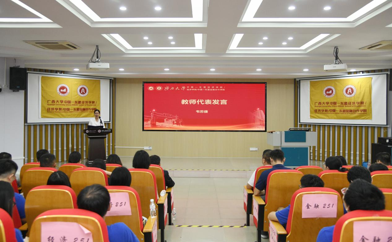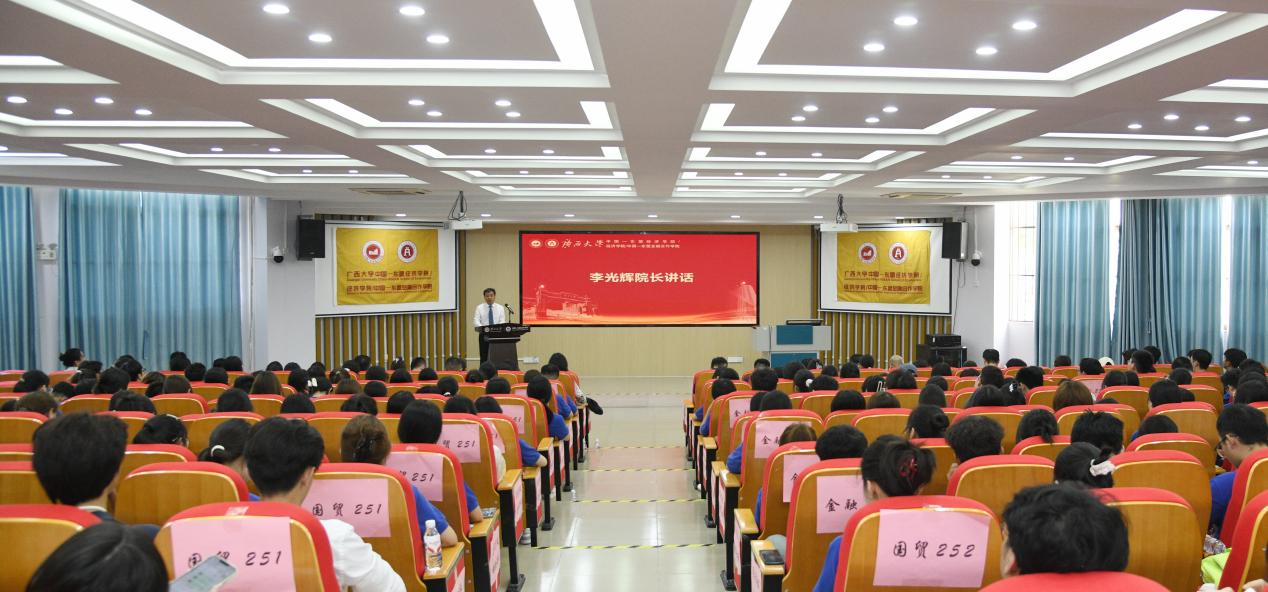院长李光辉代表学院向全体新生致以热烈欢迎,并回顾了学院自1937年创立以来的发展历程与当前以“应用经济学”“区域国别学”为核心的学科布局。他鼓励新生胸怀“国之大者”,将学术追求融入国家发展与区域合作的大局中,扎根真实问题,服务战略需求。同时,他强调应锤炼跨界本领,主动打破学科与文化界限,在东盟研究、边疆经济等特色领域开拓创新。他还希望同学们恪守学术初心,弘扬科学精神,做到诚信严谨、勇于批判、脚踏实地,在持之以恒的探索中成就卓越。最后,他表示学院始终秉承“勤恳朴诚、厚学致新”的校训,致力于培养具有国际视野的高层次人才,并祝愿新生在未来的学习生活中收获成长,学有所成。