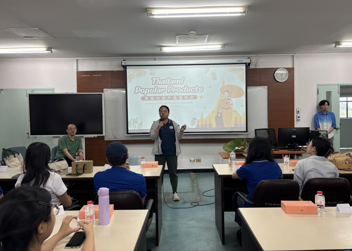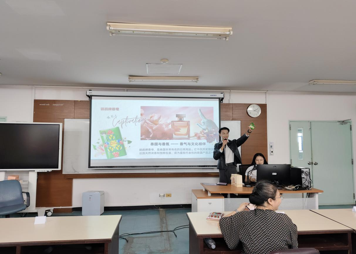 的交流访学团,并说:“中泰两国地缘相近、文化相通,我们希望通过此次交流让两校青年在学术碰撞中增进理解,成为中泰友好传承的桥梁。”紧接着,清迈大学CAMT数字学院副院长李雄鹰老师强调:“我们的‘产品+文化’协作模式,将帮助中泰青年在展示专业能力的同时,深入挖掘产品背后的文化内涵,推动两校合作向更广阔的领域拓展。”