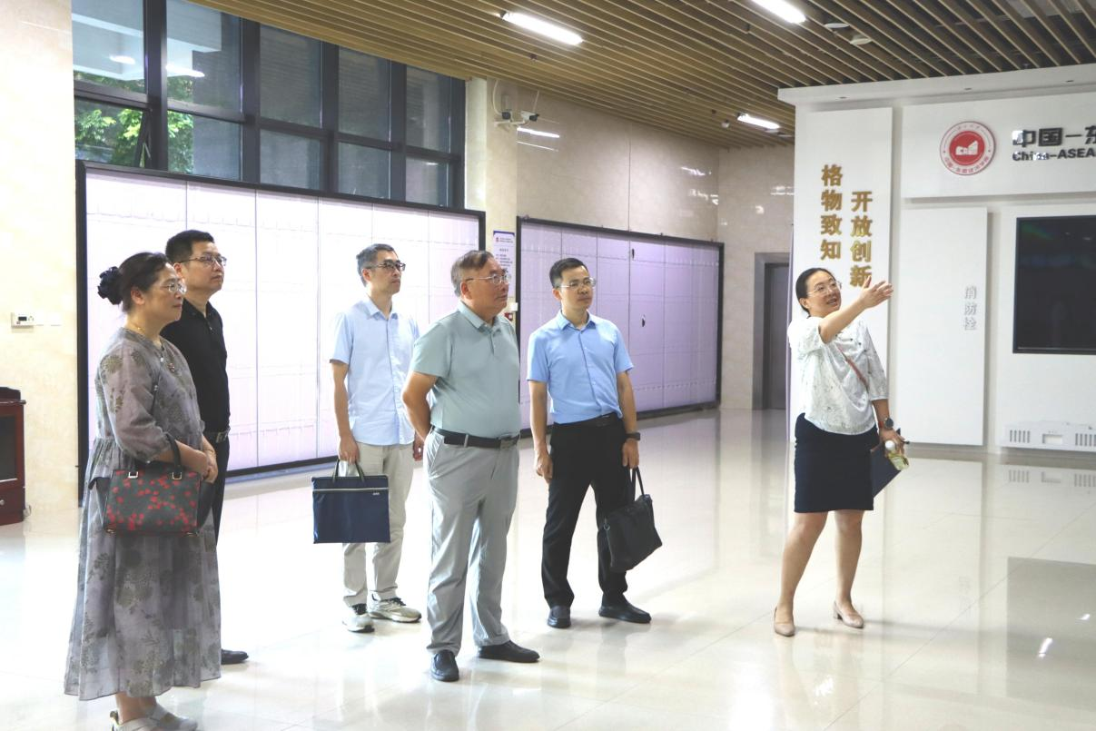 会前,调研组参观了学院一楼展厅及中国—东盟大数据中心,听取学院发展历程、学科建设与人才培养等方面的介绍。