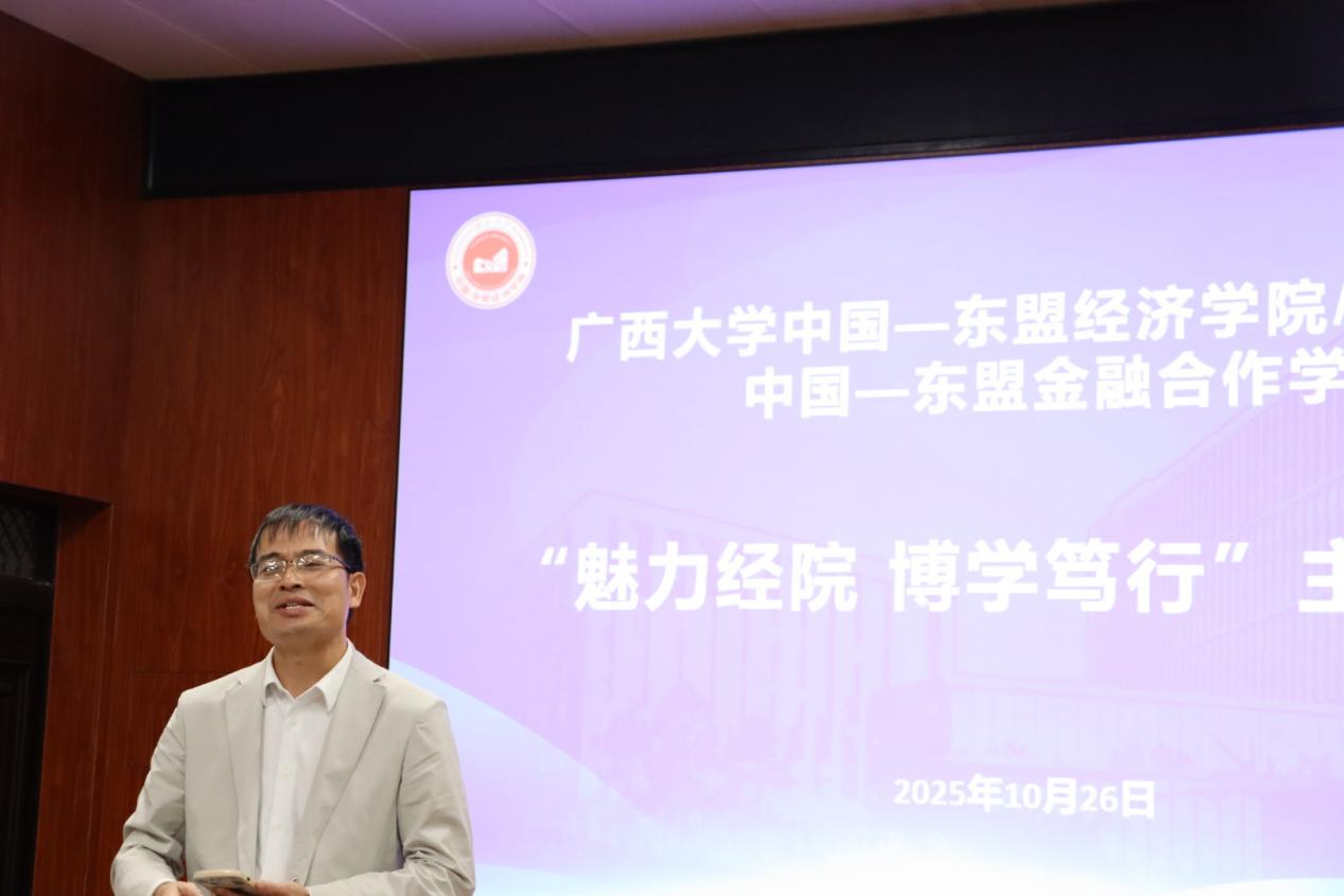 随后,金融系陈新建教授以“从经济学视角理解绿色循环发展”为题作了精彩分享。他将经典经济学理论与绿色发展理念有机融合,深刻阐释了“绿水青山就是金山银山”的时代内涵,揭示经济发展与环境保护的辩证统一关系,并通过剖析资源配置与可持续发展等关键议题,引导同学们用经济学思维审视生态环境问题,为大家打开绿色经济的思考之门。