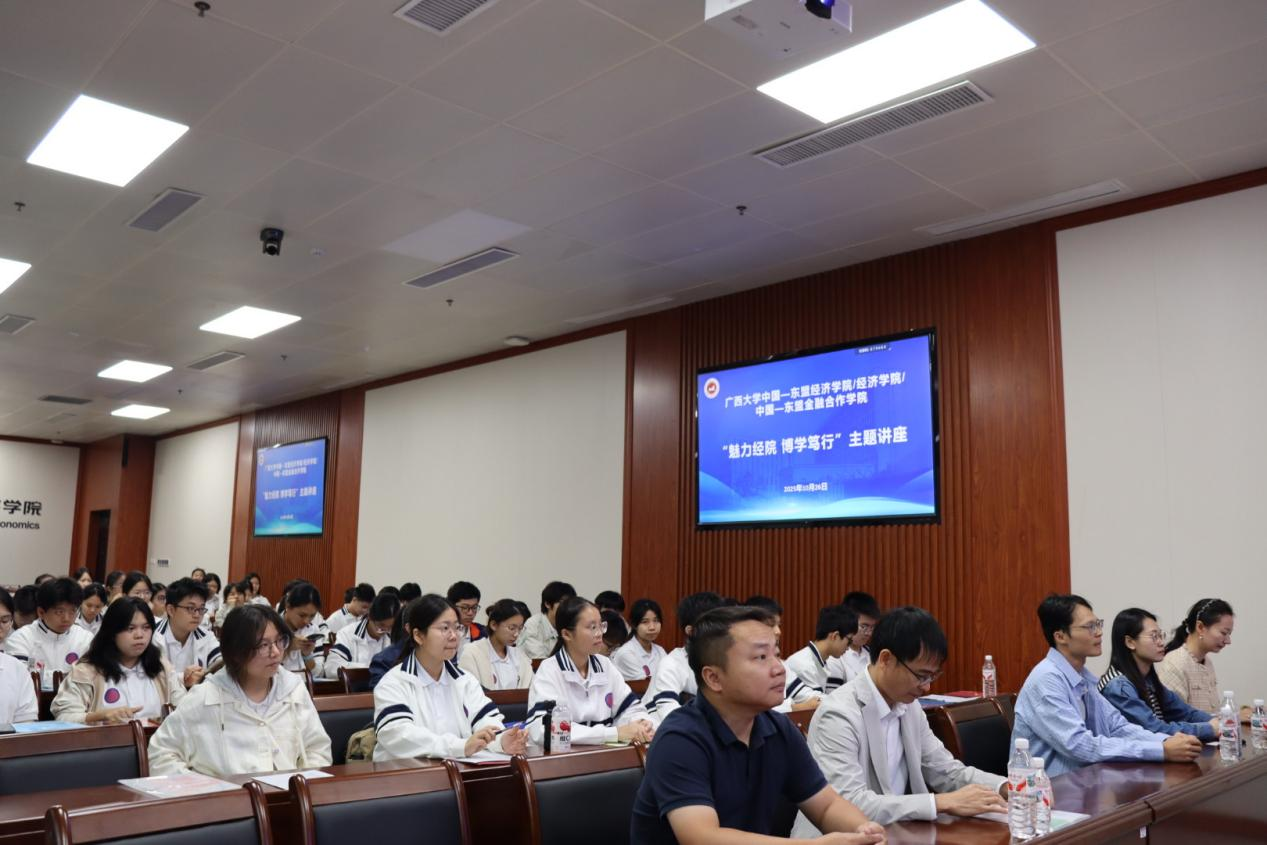 为拓展高中生学术视野,激发未来学习的热情,架起高中生与我校之间的桥梁,2025年10月26日,广西希望高中年级校长汤海生、陆荣贝一行2名教师带领50名高一学生到我校开展“筑梦高校 扬帆未来”主题研学活动。学院党委副书记刘梦娟、金融系陈新建教授、本科教学办公室相关老师参加本次活动。