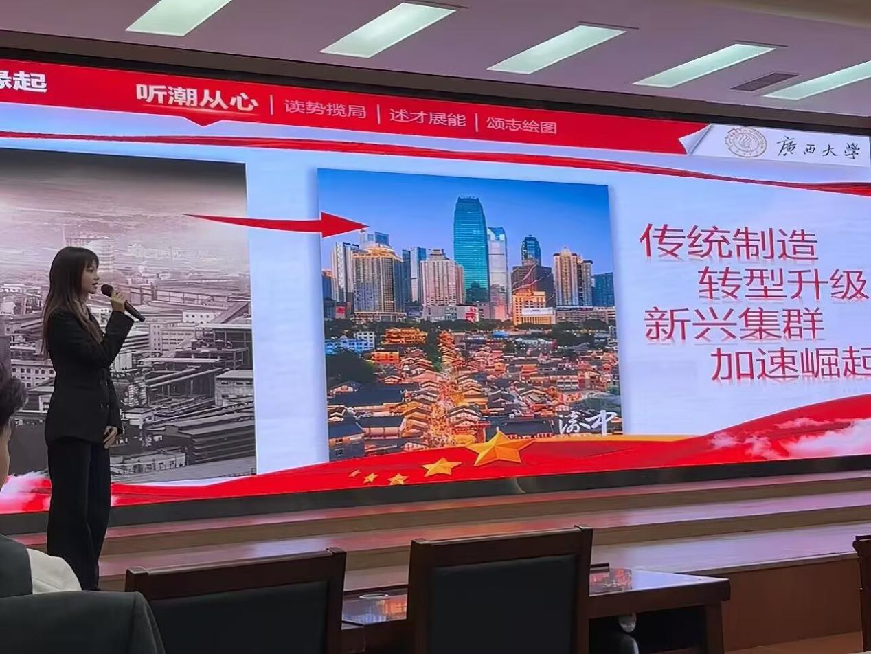 站在职业规划大赛的舞台上,柯贤婷从容地阐述着自己的职业理想,从专业积淀到实习展望,从东盟市场的机遇分析到个人能力的提升路径,她的讲述既有对专业的深刻认知,也有对未来的清晰规划。