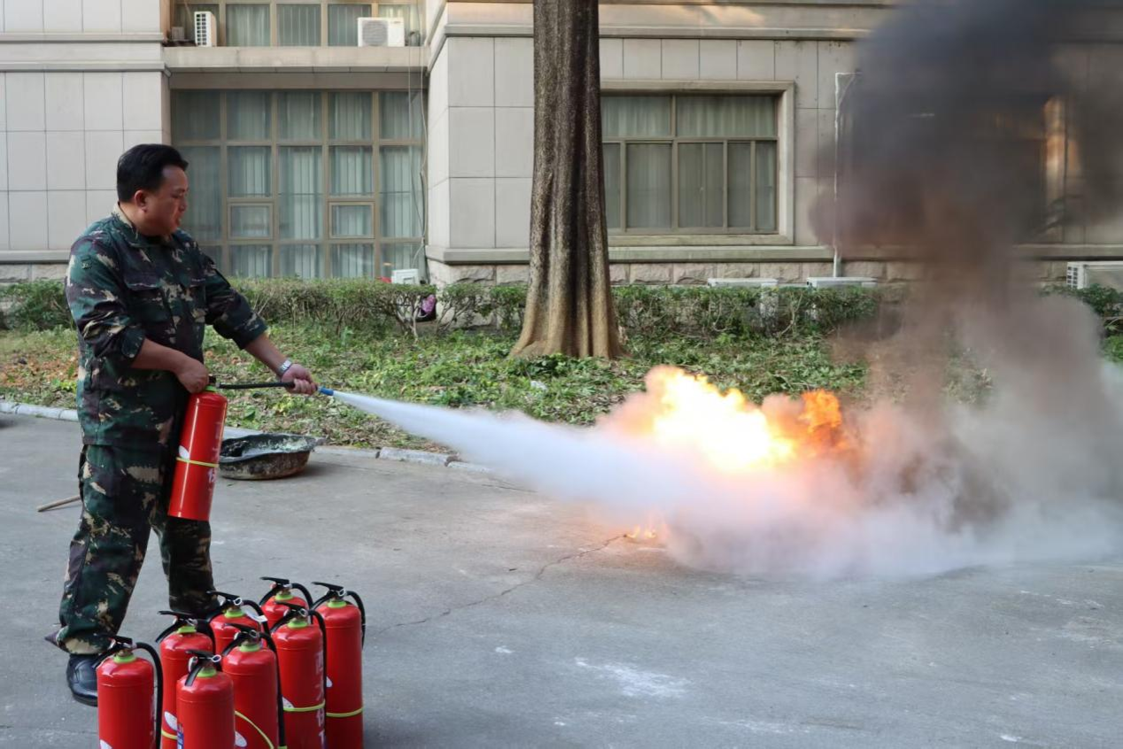 最后开展灭火实操演练。在指定安全区域,面对燃烧的火盆,师生代表分批上前,按照所学步骤,手持灭火器成功扑灭火源。通过亲身实践,师生对消防器材的使用方法和初期火灾扑救技巧有了更为直观的认识和体会。