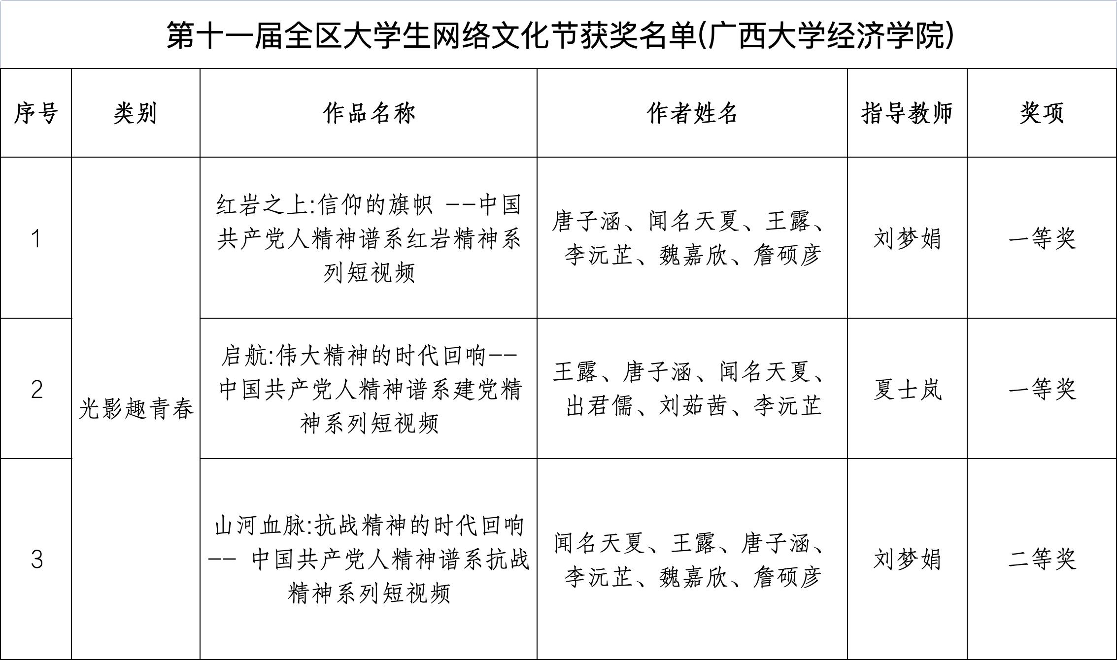第十一届全区大学生网络文化节获奖名单