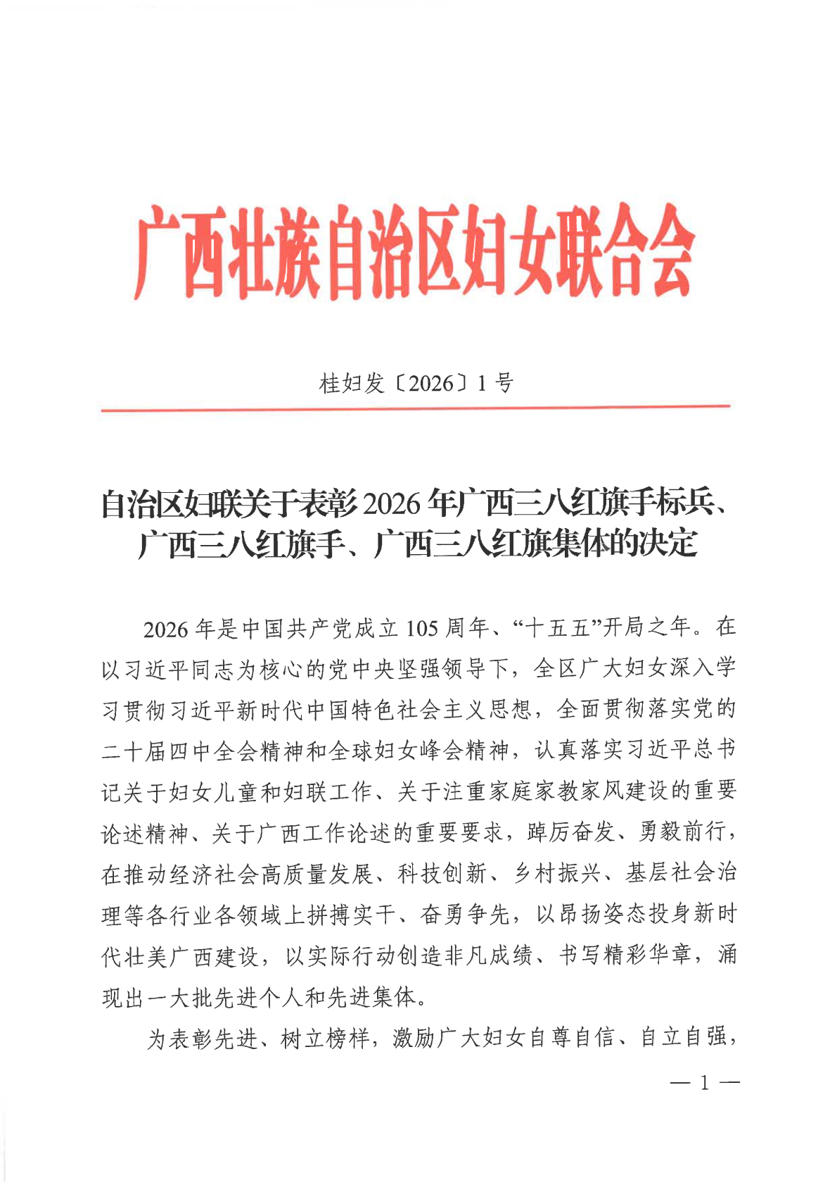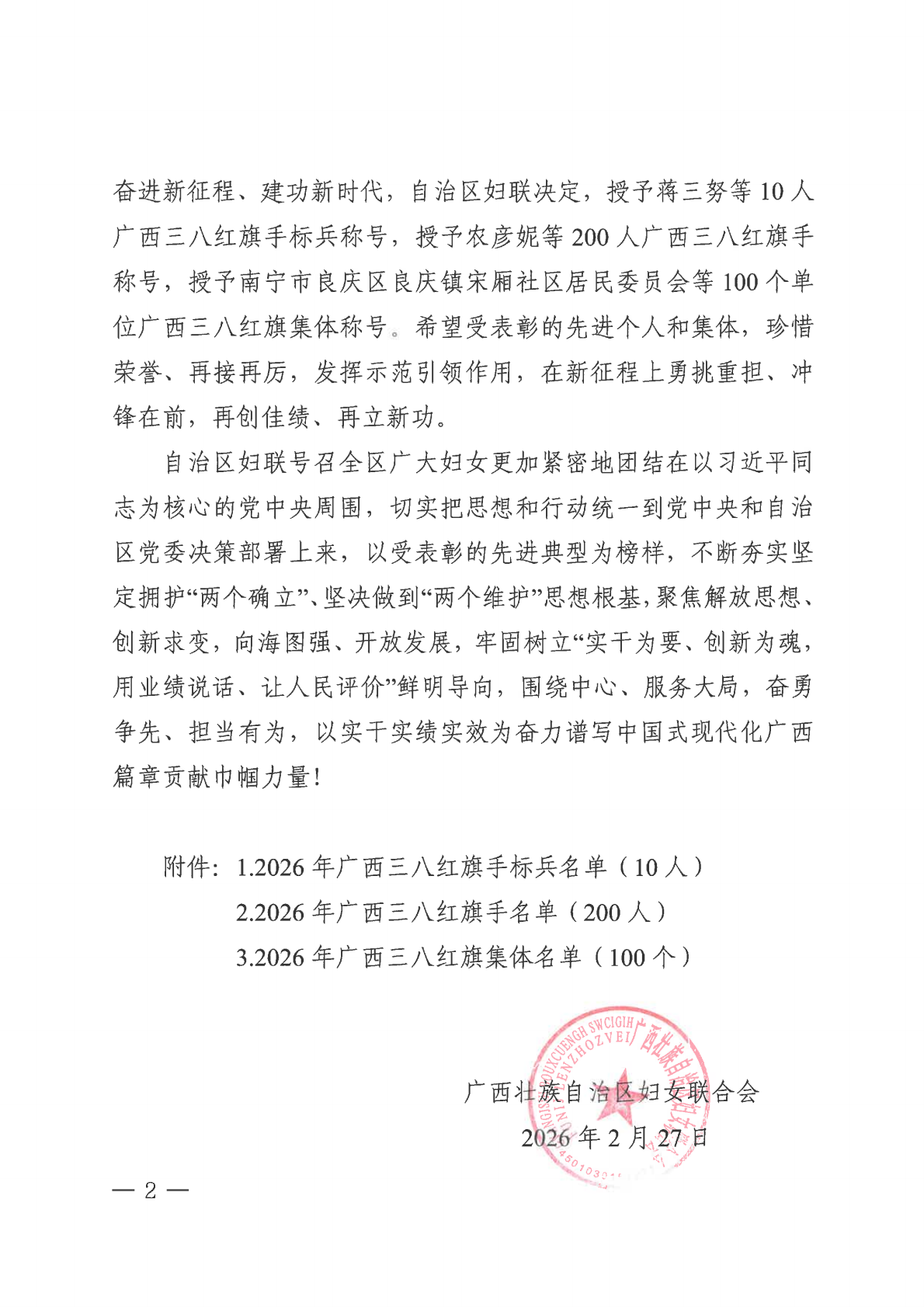 近日,广西壮族自治区妇女联合会发布《关于表彰2026年广西三八红旗手标兵、广西三八红旗手、广西三八红旗集体的决定》,91黑料