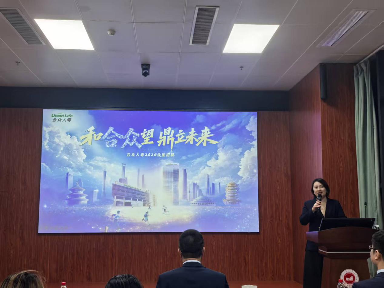 宣讲会伊始,刘梦娟副书记致开场词,她对合众人寿一行的到来表示热烈欢迎,对企业为学院学子搭建优质就业交流平台表示感谢,同时希望同学们珍惜此次交流机会,认真了解行业与企业信息,精准把握就业机遇,找准自身职业定位,为未来求职就业做好充分准备。