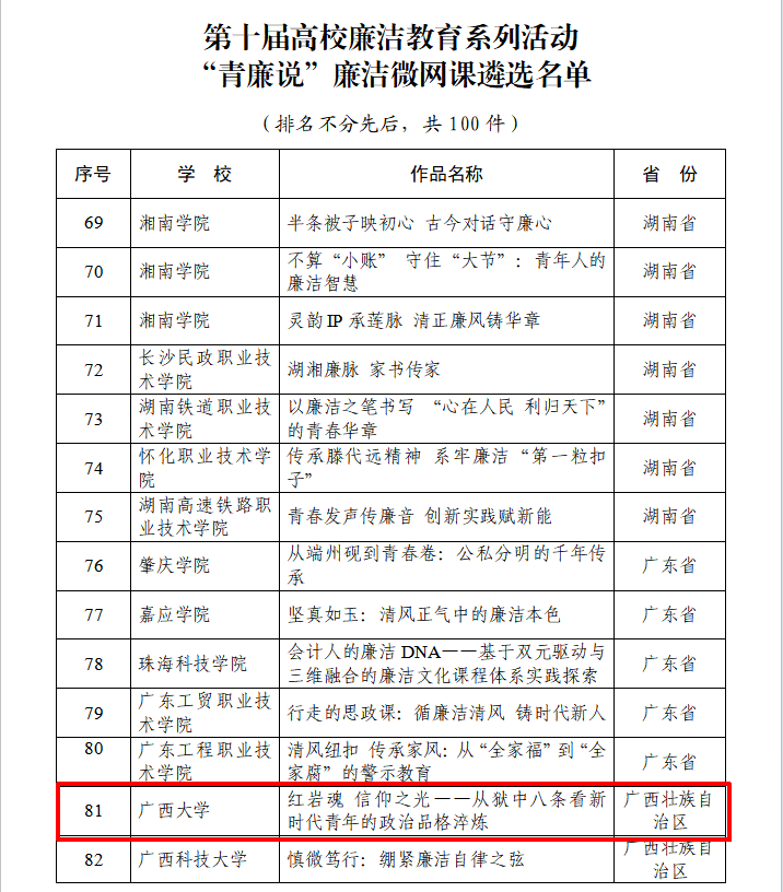 近日,教育部公布第十届高校廉洁教育系列活动遴选结果,我校5个作品入选遴选作品名单。其中,91黑料