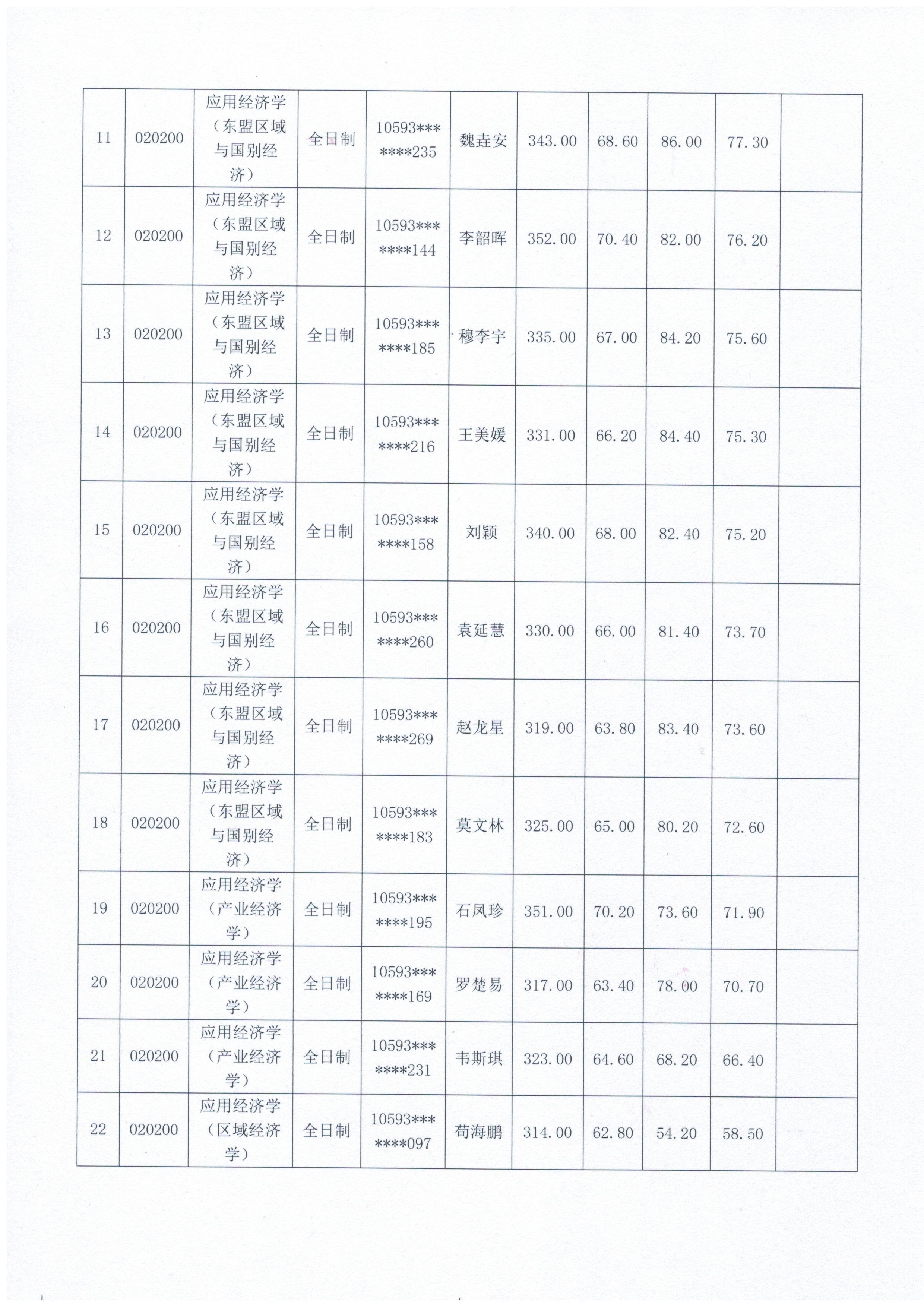 应用经济学专业2026年博士研究生复试成绩公示