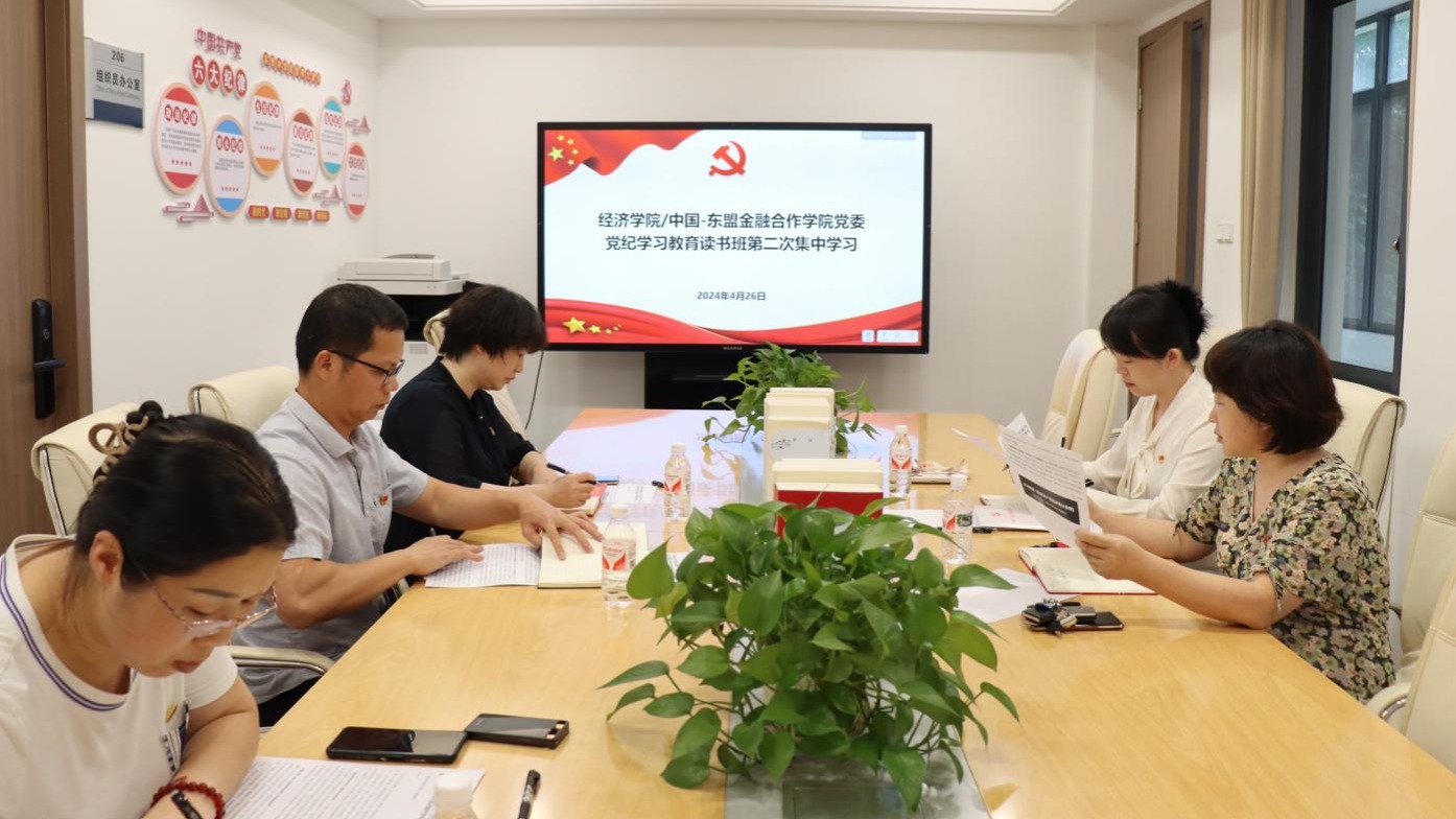 /中国-东盟金融合作学院党委在学院党员活动室开展党纪学习教育读书班第二次集中学习,学院党委领导班子、理论学习中心组全体成员参加学习。